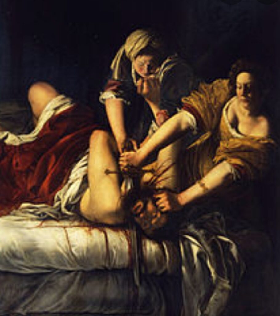 J’ai découvert ce tableau d’Artemisia Gentileschi (je ne connaissais ni cette toile, ni l’artiste) « Judith décapitant Holopherne » (en réalité Artemisia décapitant Tassi, son violeur). Et je l’ai trouvé très beau.